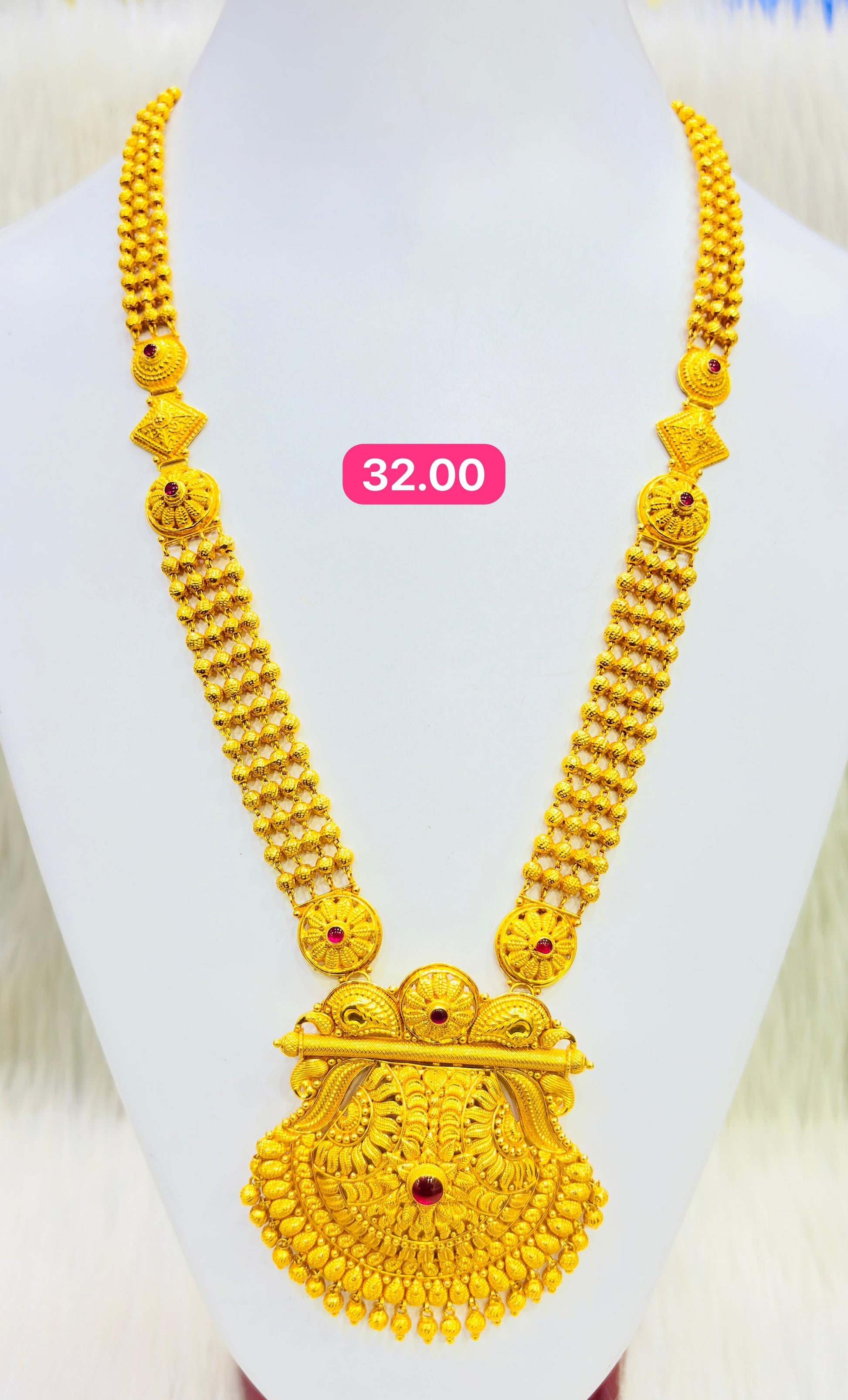 Step into the world of divine elegance with the Long Temple Haar 002, a magnificent piece inspired by ancient South Indian temple jewelry traditions. This long haar features intricately carved temple motifs, including goddesses, floral patterns, and heritage designs that reflect spiritual symbolism and cultural richness.