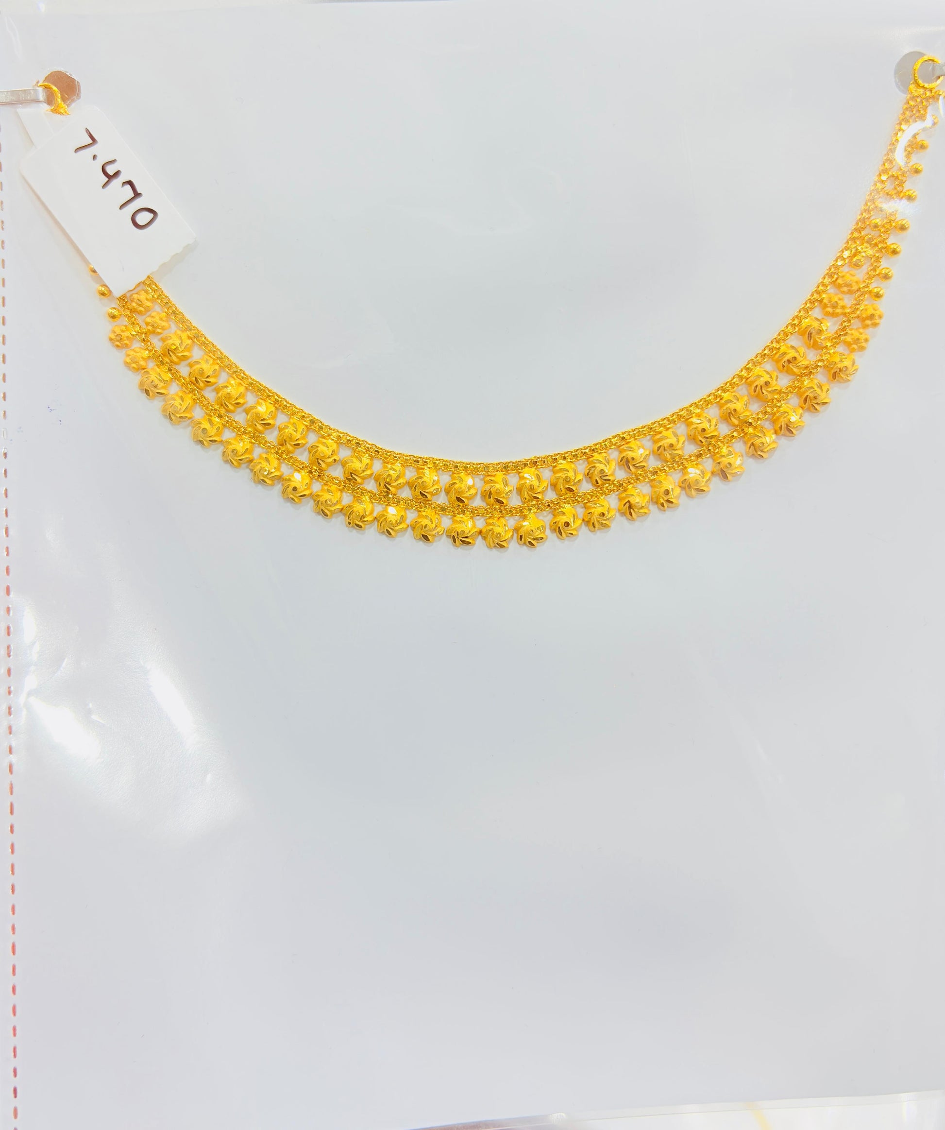 Timelessly elegant and effortlessly stylish, this Short Gold Necklace is perfect for those who love subtle luxury. Designed to sit gracefully around the collarbone, this necklace is ideal for both everyday elegance and special occasions. Crafted in fine 22K gold, it features delicate detailing and a smooth finish that complements both traditional and modern outfits.